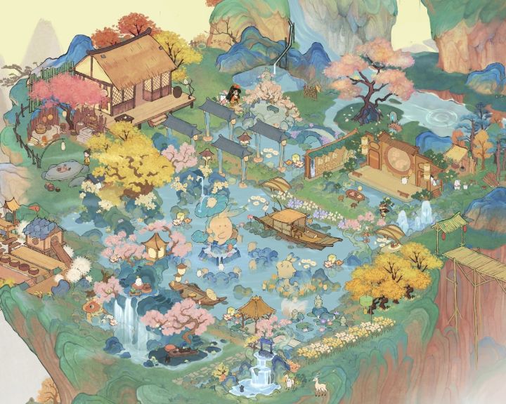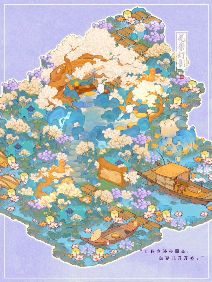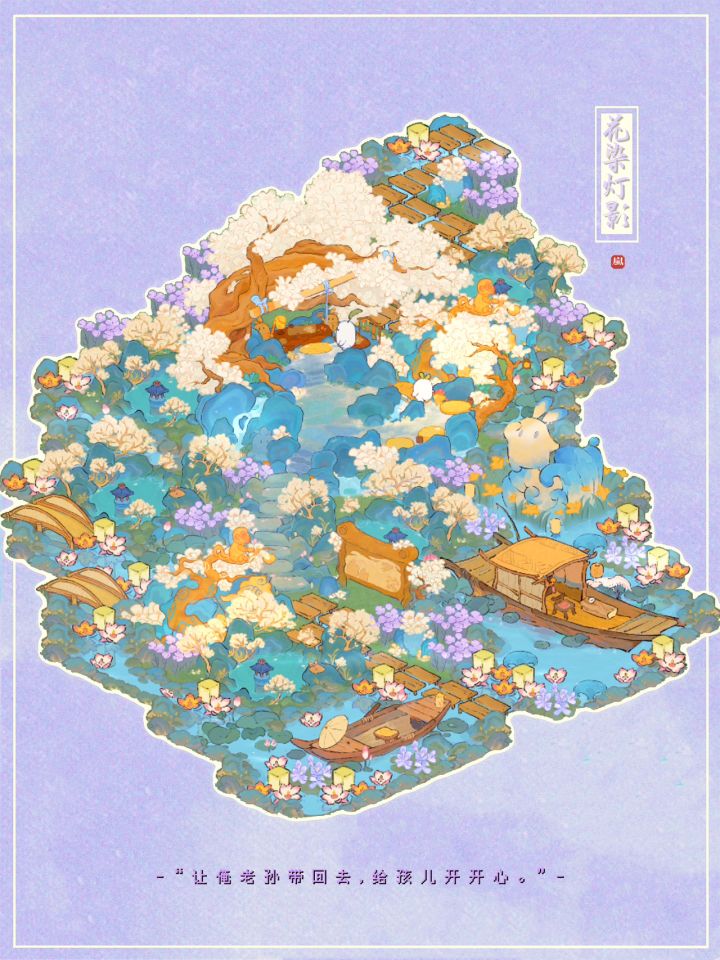 💛【新建筑】花染灯影布局|桃源深处有人家🌸🌸桃源深处有人家|新甲级建筑花染灯影布局✨主要建筑:花染灯影、仙桃招猴、曲径阶、雾凇碧潭、荷花、池萝探宝、溪曲归梦、涟舟轻荷#萝萝古镇攻略征集#桃源深处有人家#桃源深处有人家布局展示#游戏安利#游戏推荐