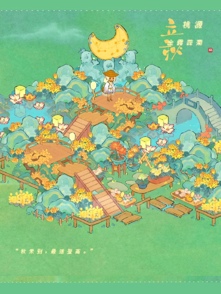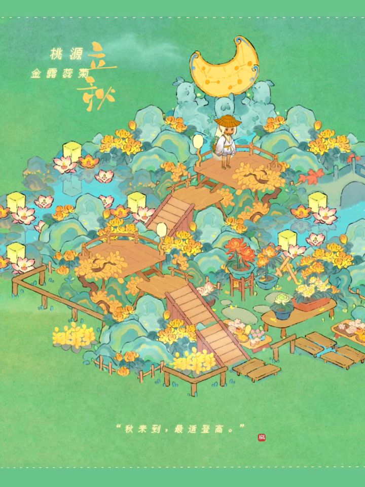🍂桃源立秋|金露蕊菊🍁🌾桃源深处有人家节气建筑布局|金露蕊菊🍂布局主要建筑:金露蕊菊、芳菊林耀、枫桥、瑶光赏台、星萤月裳#萝萝古镇攻略征集#桃源深处有人家