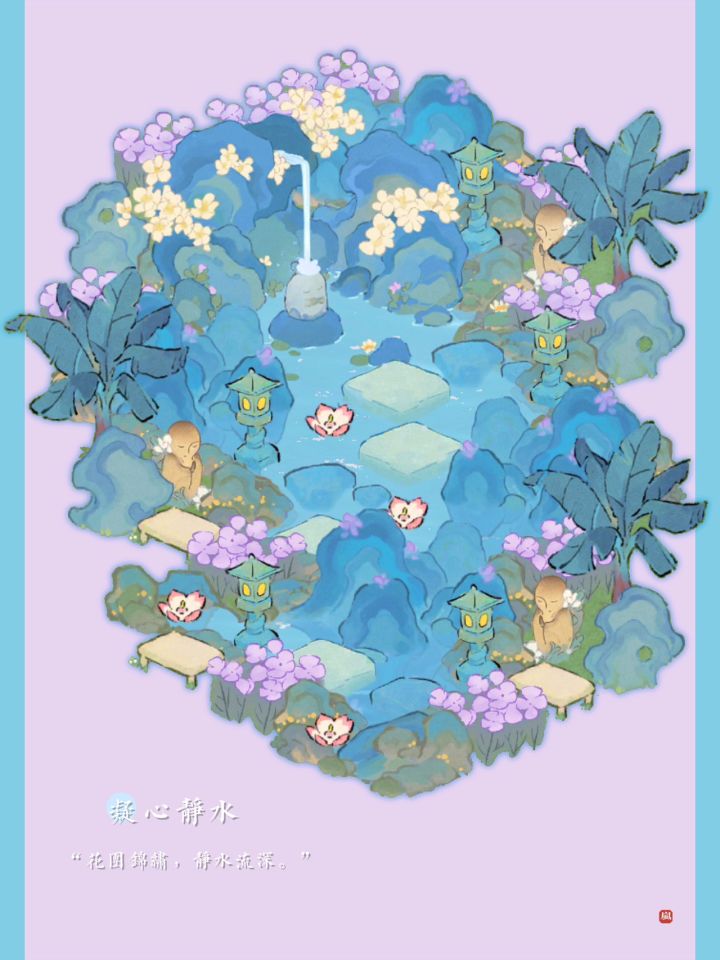 “凝心静水,静水流深。”|桃源深处有人家🌾桃源深处有人家✨凝心静水布局(寺庙获取)+地基图✨主要建筑:凝心静水、缀花水石