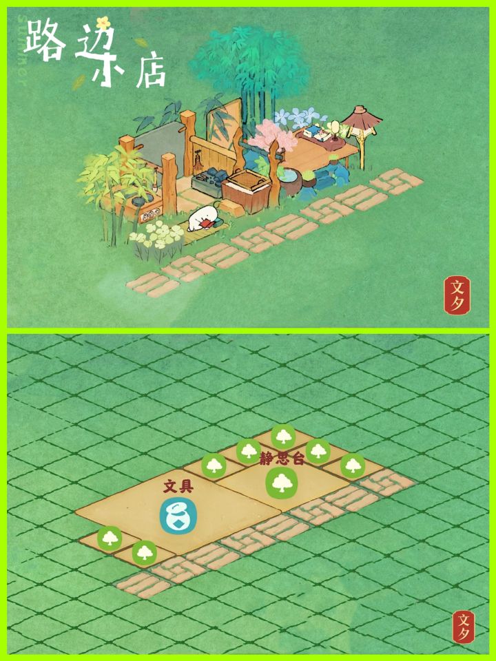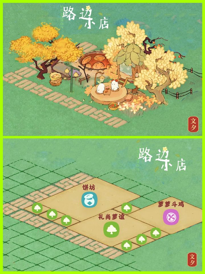 路边小店,不占地方🍃文具旁静思台,无缝衔接写作业(bushi)🍃玩具店旁跷跷板,有相同元素🍃饼坊 &礼尚萝谊🍃绣坊&纺织