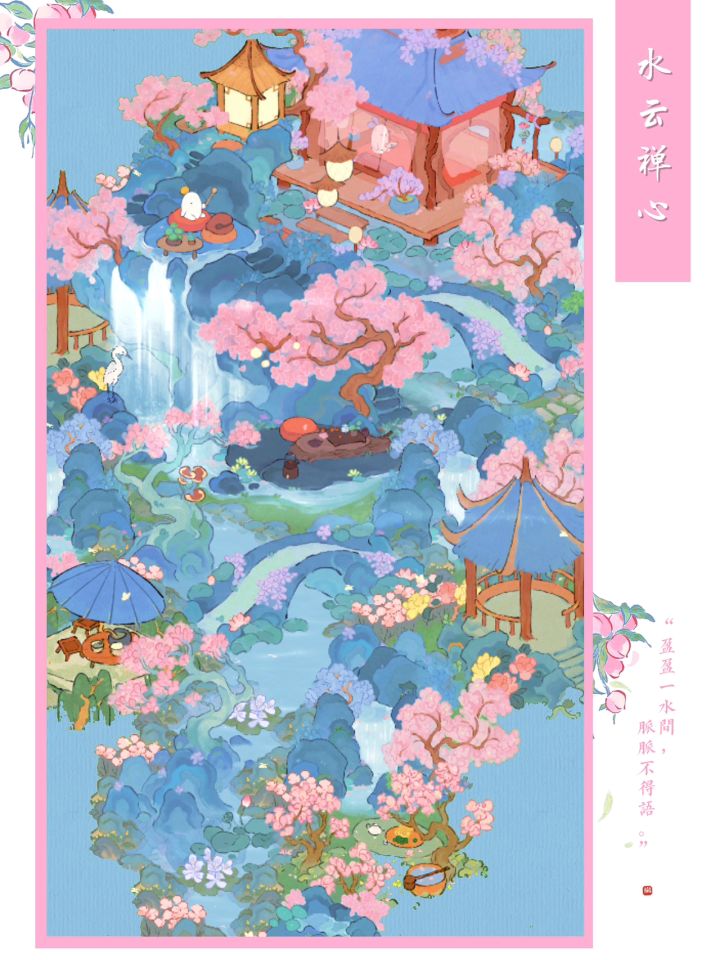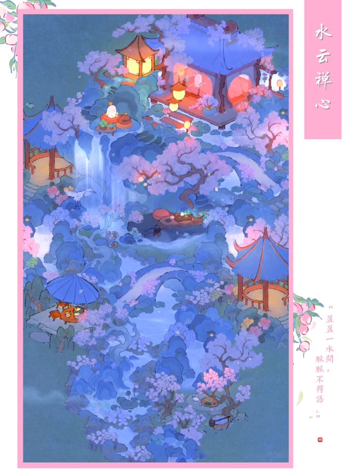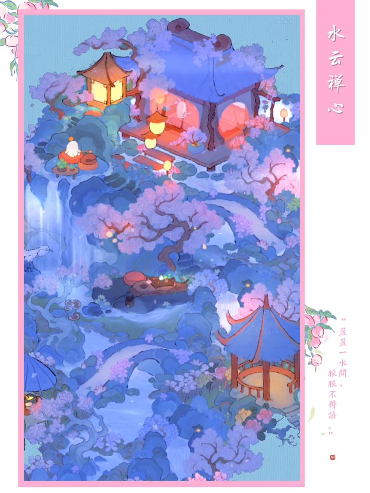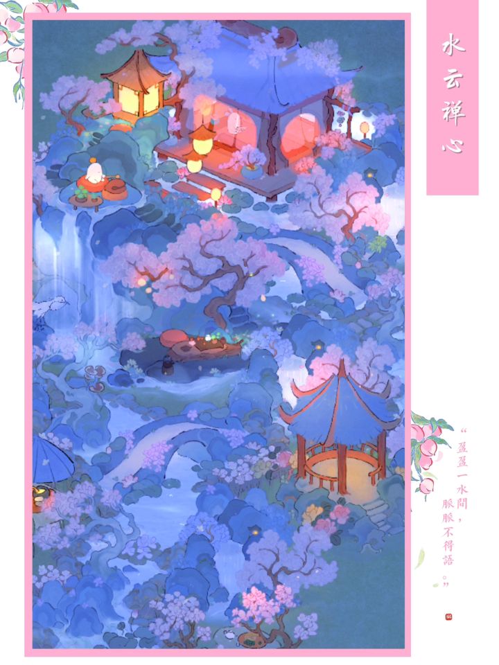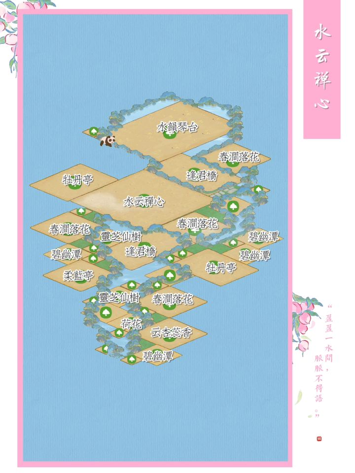 【新建筑】水云禅心布局💕🐬大家都抽到水云禅心了吗?🪷水云禅心游戏布局✨“盈盈一水间,脉脉不得语。”✨主要建筑:水云禅心、水韵琴台、春涧落花、牡丹亭、碧幽潭、灵芝仙树、云杏蕊香、柔蓝亭、荷花、逢君桥#禅茶一味#游戏安利#游戏推荐#种田游戏