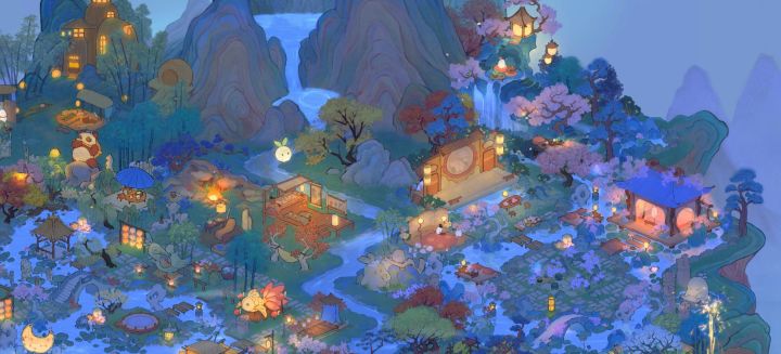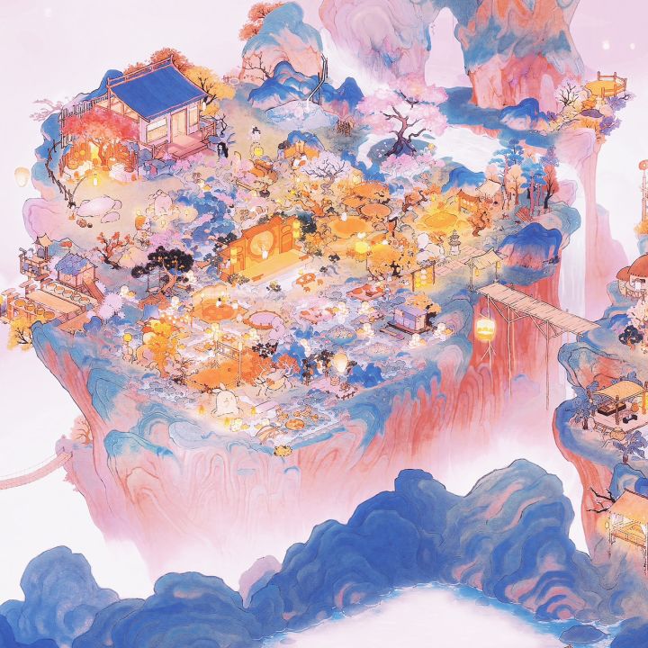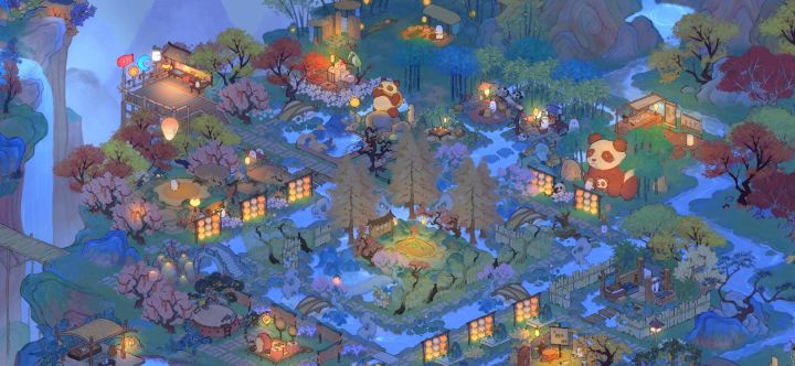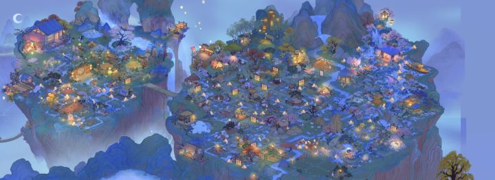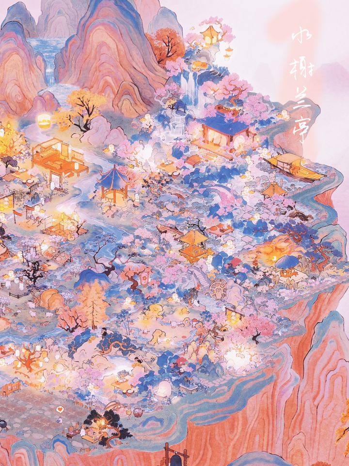 自己做了一些调整,因为自己河灯不太够,有的地方可能有点黑,宝贝们可以自己加上灯,还有一些建筑打算摆在二岛右边(但是我没开完...)牌桌部分是自己摆的,大佬的原布局里田地没有放一块,我懒就都放一块了哈哈哈(●°u°●) 」,有喜欢的话回复我就放地基图啦~