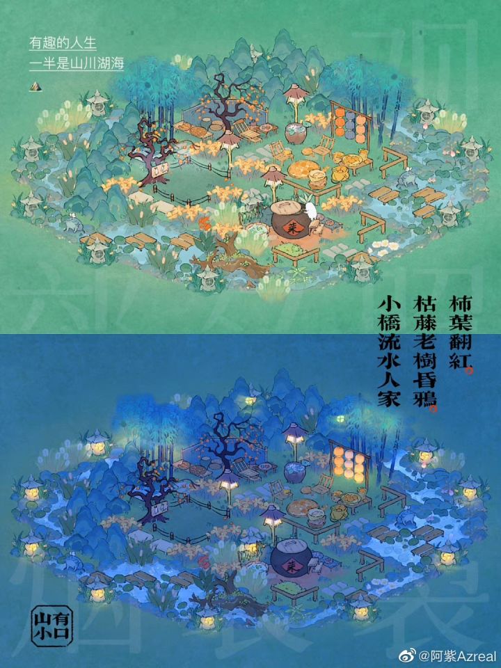 关于我为了六一儿童节连夜加班弄出来的新家园,融合参考了许多帖子上看到的优秀布局,当然也有原创!岛一是大大爱心岛闲聊棋牌室,入门吱呀秋千是童话梦境一样的存在,给我一种向往和神秘的感觉,整体视觉上比较比较输点,但至少棋牌桌好友来了不会半天找不着吧,直接快捷来了就开打,旁边一排摇摇椅,吹吹凉风,闲聊~眺望对峰十分惬意。最喜欢岛二中间舞台大大的会客厅大气上档次有内涵,团建备份二大舞台和一些装饰建筑一收,