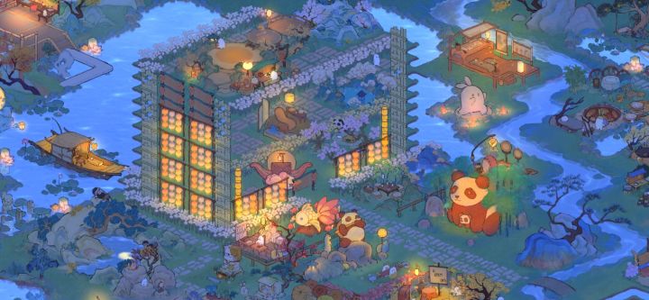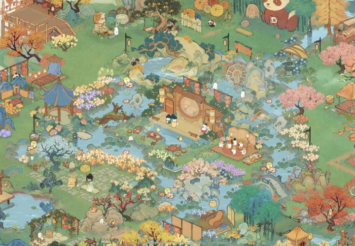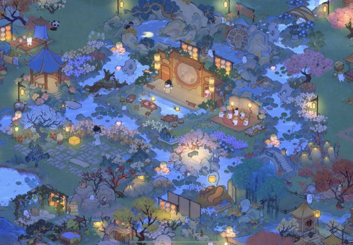 手动曲水流觞,可惜截图截不全,只能全景上看啦~正在努力抽到120,争取早日拿到石岸!#桃源深处有人家