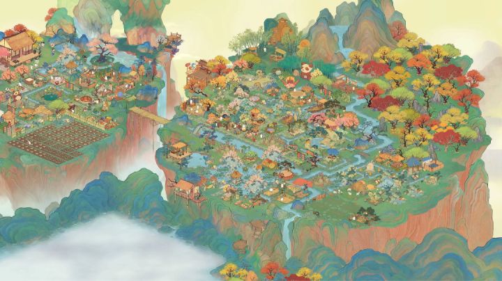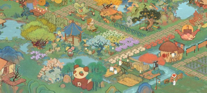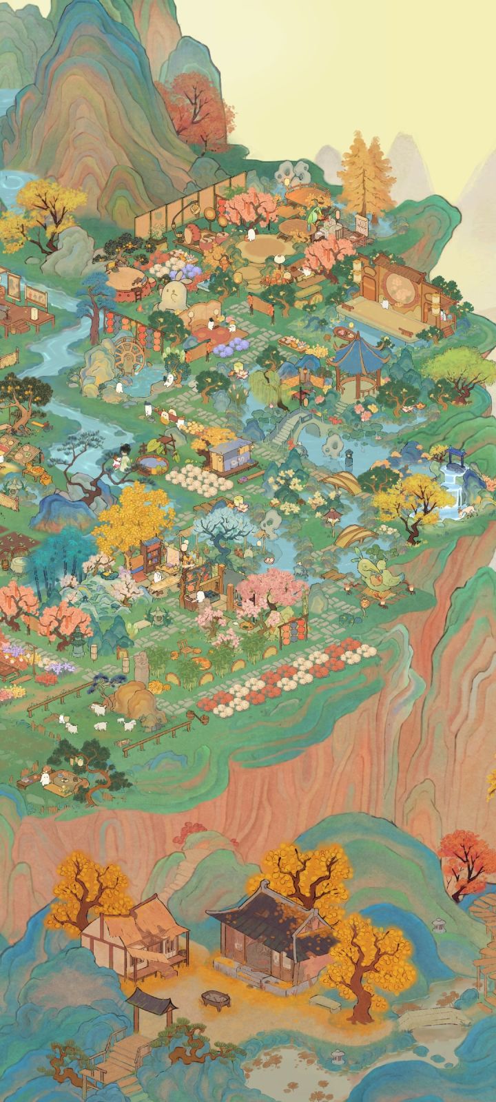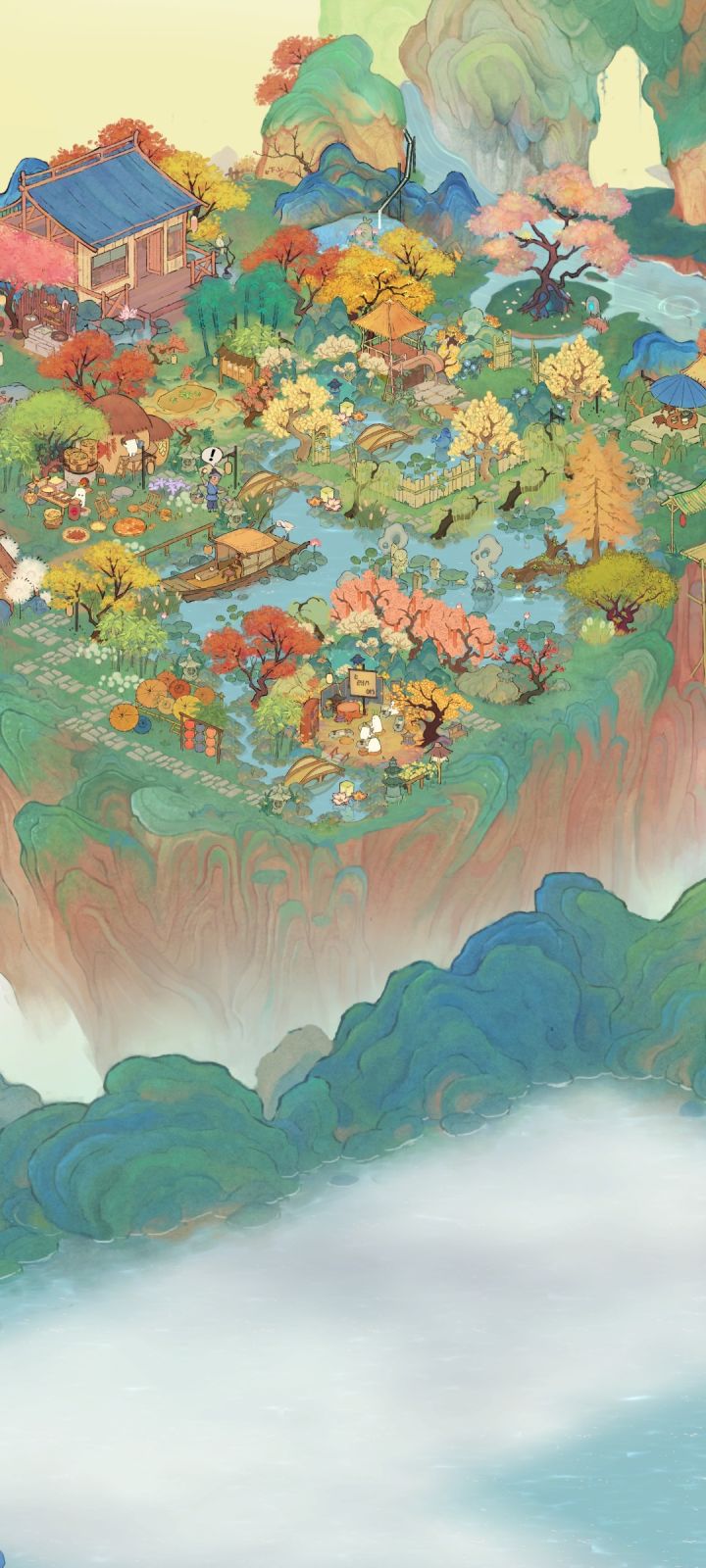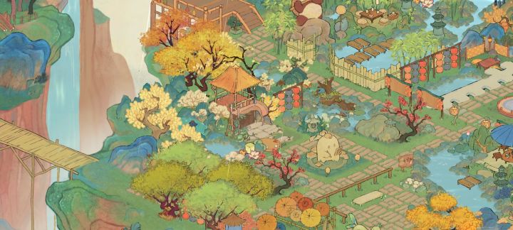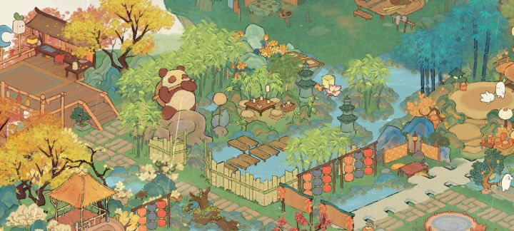 (我的非酋属性限制了我的想象qwq,要不是桥不够我想全挖成水域。)我的思路是这样的:深山里有一个不起眼的小瀑布,瀑布连接着隐蔽的深山里的小溪、水潭和湖泊,岸边有一个篱笆小院儿,院落里种满了桂花树。院子的主人是一位白发苍苍的老渔翁,他会在下午的时候披上蓑衣提一盏灯,哼着奇怪的调子撑着自己的渔船去打鱼,夜幕来临时才归家,他还在湖泊里种满荷花,有兴致的时候就会采集荷叶和露水烹茶。老渔翁以自己家为