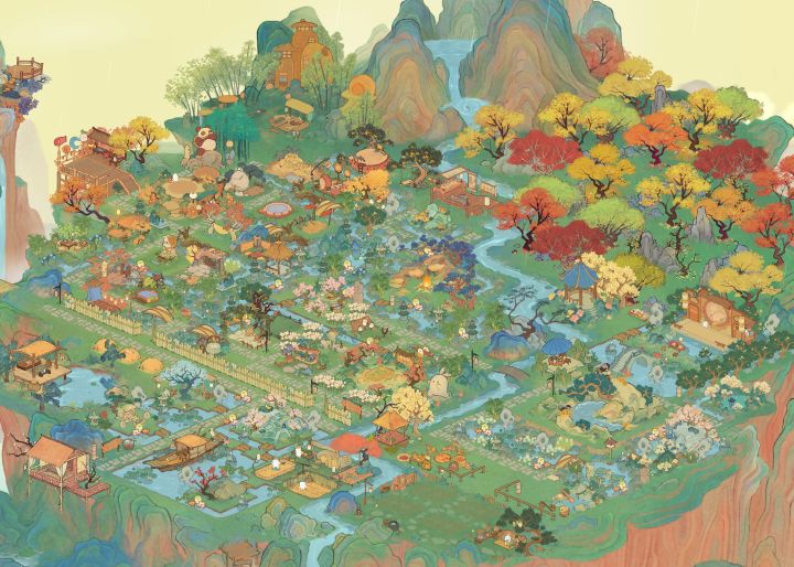 《凭澜观曲》第二弹就…稍稍规整了一下,加了五一活动的新建筑,比之前也对称了一丢丢…完毕。#池台日暖内容征集#桃源深处有人家布局展示#桃源深处有人家
