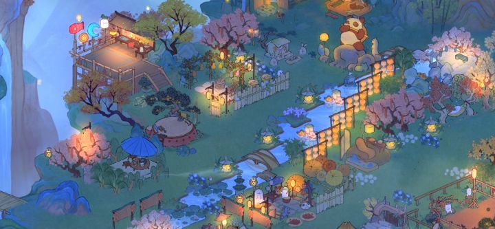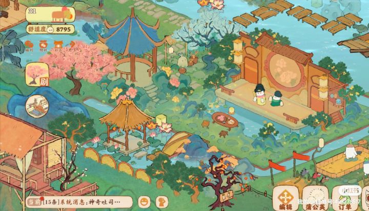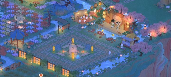 自己做的小广场,一开始是小伙伴玩烟花,我想着应该整一个广场后来一路修修改改过来现在基本差不多完善了。在这里可以坐下来听曲看戏,或者旁边还有布偶戏也可以去河边散步累了可以去亭边赏花