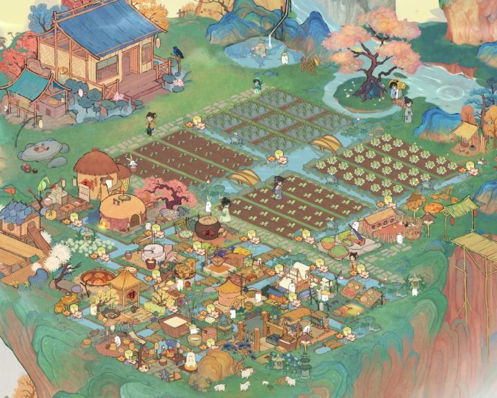 水墨丹青,乡野桃源,萝卜成精了也逃不过007嘿嘿嘿。喜欢自己的庭院~看小萝北精,勤勤恳恳,兢兢业业❤hh✨里面没有很多任务,日常种菜收菜钓鱼对农产品二次加工,连买卖都在自己家门口,不用社交,自给自足,还有小工hhh,我de梦中情源~#桃源深处有人家