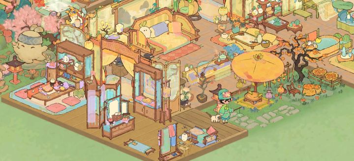 扇子周围的地暂时没有感觉特别合适的搭,所以有空地留下,等之后有了合适的再把搭好的全景放评论区,喜欢的友友可以自行搭配q区id:600175487(猫又又),欢迎来参观#桃源深处有人家 #桃源 #桃源深处有人家布局展示
