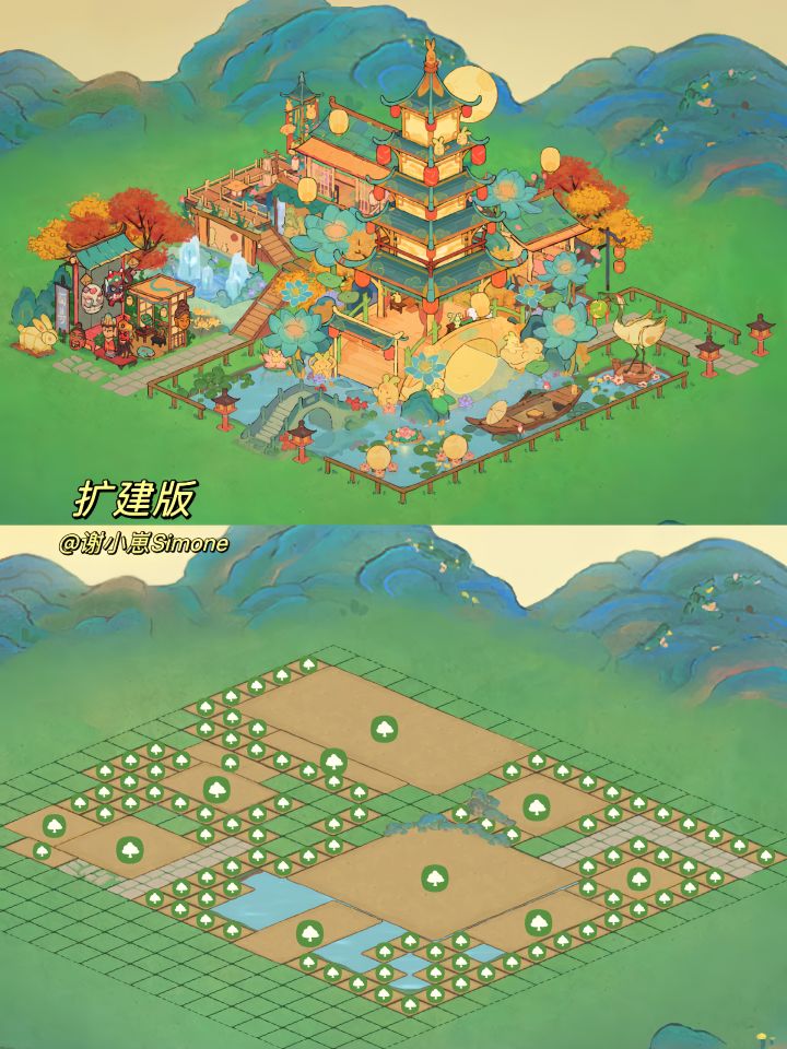 造景编号:只上传了扩建版,wz821346这次的新甲和桃源乡兑换的甲好搭呀~这个布局对零氪党很友好~ #桃源深处有人家装修 #桃源深处有人家 #桃源深处有人家布局展示 #发现好游戏