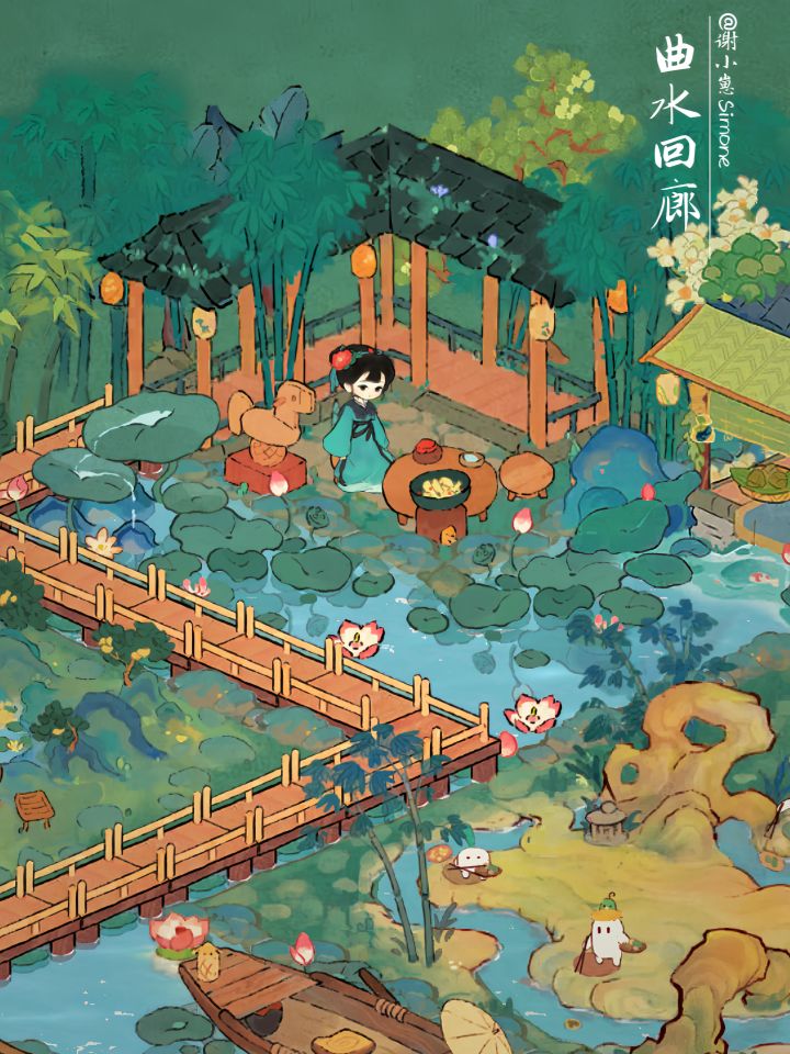 🌿带你进入桃源园林深处,坐听曲忆姑苏#桃源深处有人家 #桃源深处有人家布局展示 #桃源深处有人家装修 #游戏日常 #桃源深处有人家二岛布局