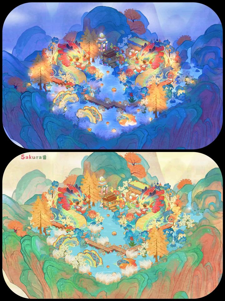 萝萝们都选的白天还是夜晚呀?感觉夜晚亮一点举手可是白天色彩好好康 #桃源深处有人家 #桃源端阳布局