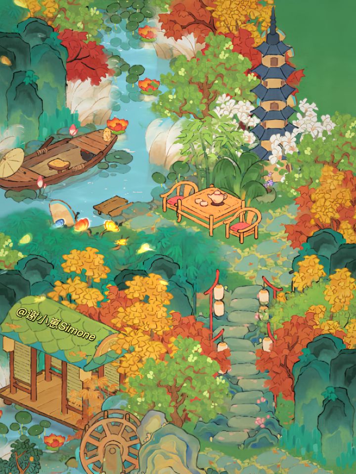 主要建筑|彩蝶绕枝|叮咚水车|尺鲤廊桥|花檐塔寺|涟舟轻荷|曲径阶|岚山灯|淡墨石 #桃源布局 #桃源深处有人家 #桃源深处有人家布局展示 #桃源深处有人家装修 #发现好游戏