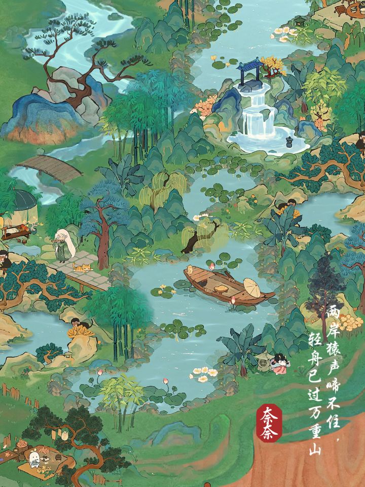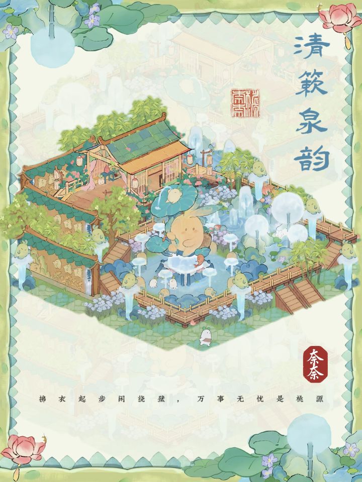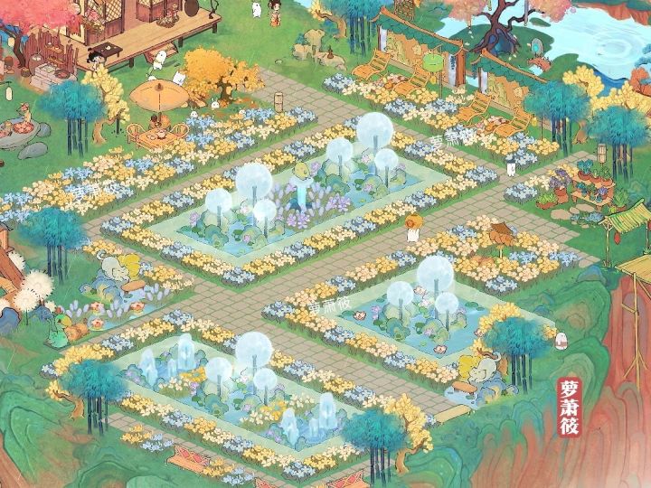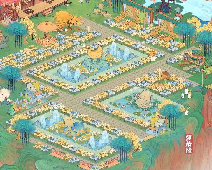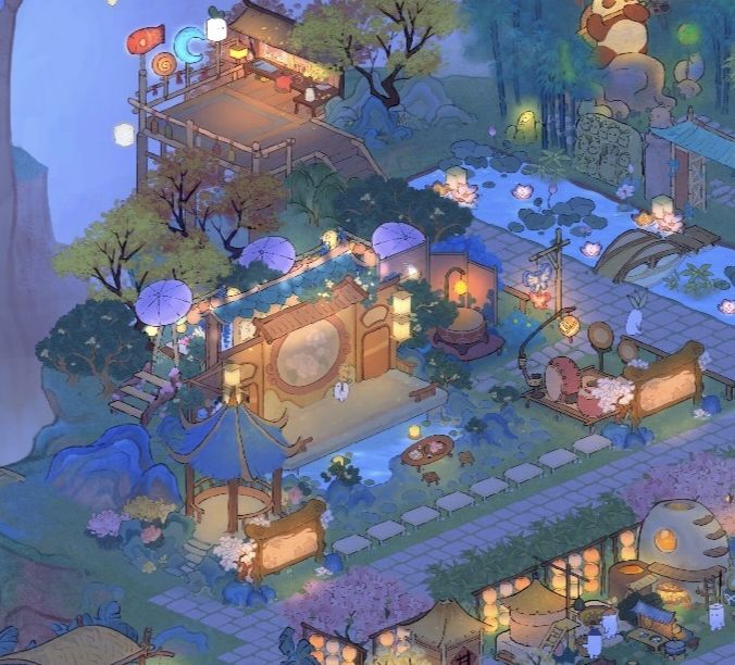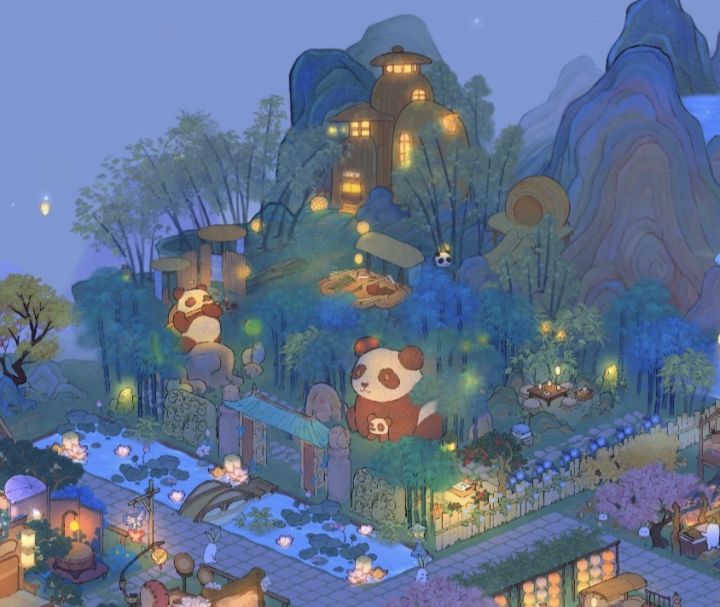 🐼来「熊猫谷」修行,有滚滚们陪伴不孤单哦!比心布局包含四个甲,比较实用的一个布局。比心P1是白石路,动线比较清晰;P2是枫叶路,与景色适配度比较高;可根据喜好布局。比心造景编号:wz610040比心主要建筑:墨踪侠隐 水云静栖 灯竹萌趣 菩提一页藕花风亭 芰荷珠龙 蹴鞠场 竹梦回廊 桴梦逐音 淡墨石 花梯 水栈道 荷叶灯架 出水芙蓉#桃源深处有人家