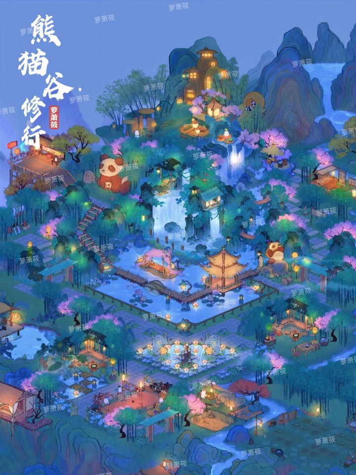桃源|「熊猫谷修行」|武侠风墨踪侠隐布局