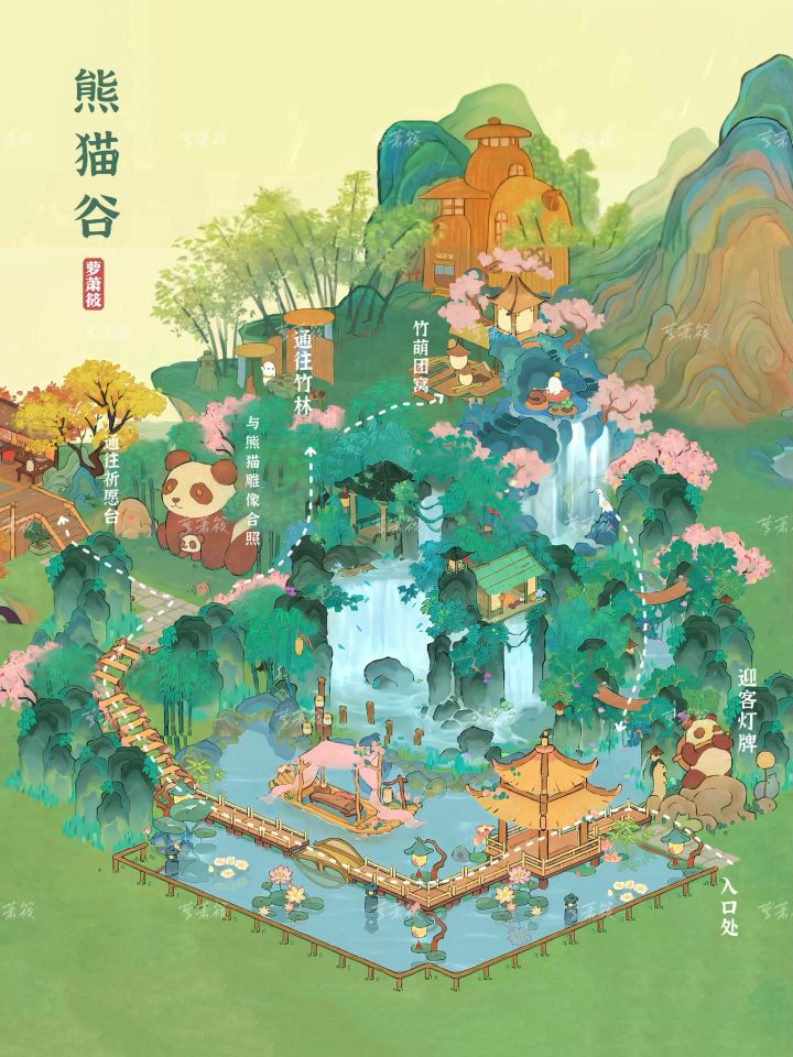 📸打卡桃源 「熊猫谷」,欢迎光临滚滚们的生活!🌸主要建筑:墨踪侠隐 水云静栖 藕花风亭 灯竹萌趣 桴梦逐音 淡墨石 花梯 水栈道 荷叶灯架 出水芙蓉 #桃源造景展 #陶梦江湖 #桃源深处有人家装修 #桃源深处有人家 #桃源陶梦江湖
