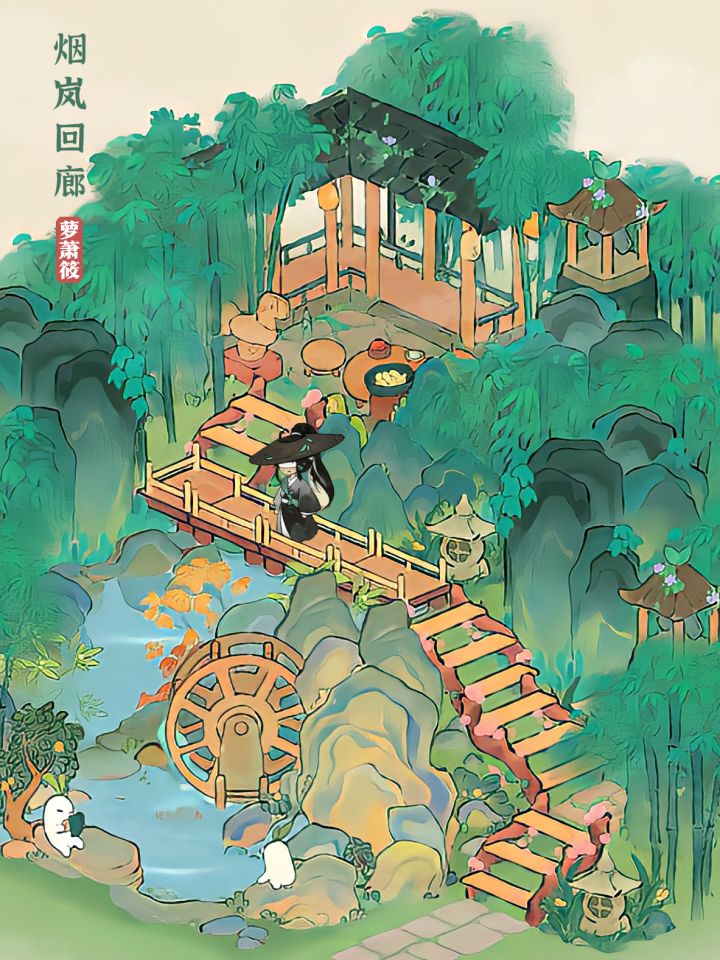 岚烟浮翠屏,细雨催新笋。闲梦游侠少,廊下说江湖。 #桃源陶梦江湖 #陶梦江湖 #桃源造景展 #桃源深处有人家 #桃源深处有人家装修