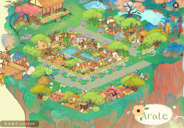 山河造景出啦,做了两个造景,安卓q区,抄录可以直接搜我的山名号:600803224一岛可以参考图二造景或者参考原帖~原帖戳这里#攻略#桃源深处有人家#桃源深处有人家布局展示#桃源造景展