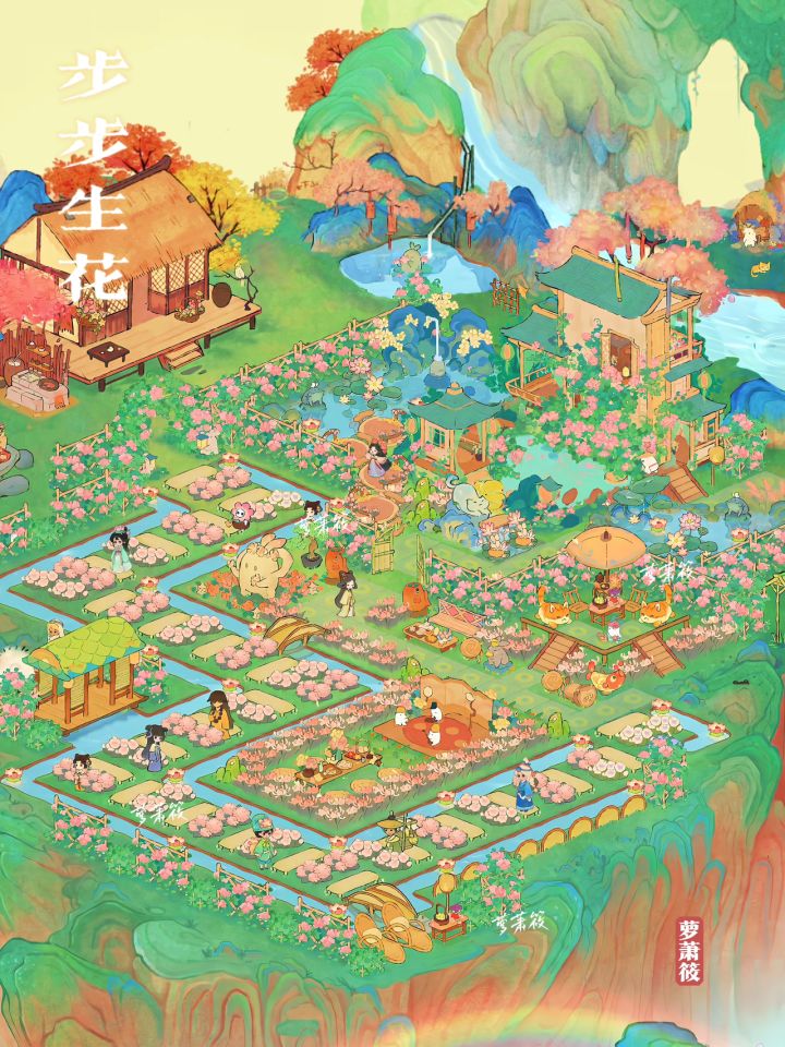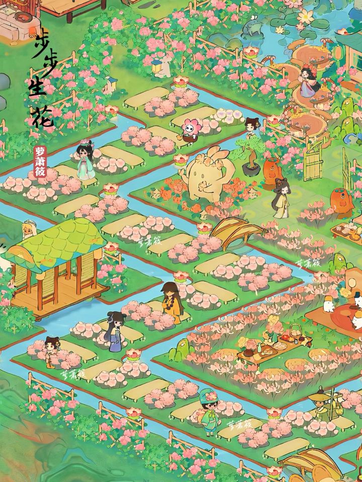 桃源|「步步生花」粉色花园布局(可抄录)踏步石 路生花造景编号:wz567039欢迎抄作业,禁搬运,谢谢喜欢#桃源深处有人家#桃源周年庆#桃源深处有人家装修#桃源造景展#桃源深处有人家一岛布局