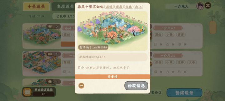 桃源又是春,今天终于20级了,特别来发布一下自己的审美作品,希望各位支持一下作品编号:wz566978