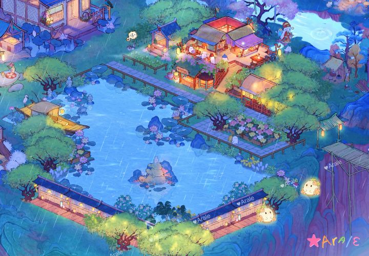 菡萏风生思万缕,深山雨湿柳千回。久无鱼雁传边信,却恨蛙鸣满耳来。给一岛弄了个荷塘景,在小楼上静静的听雨赏荷,感觉也很不错呢#游戏种草计划