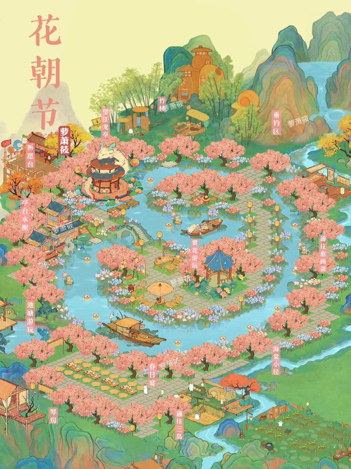 桃源丨「花朝节」春日限定游玩布局🌸花朝是百花诞辰之日。农历二月暖潮涌动,某个春日的清晨,园中、野外百花竞放,尽态极妍,是为花朝。🌸花朝节,也称“花神节”;这天古人赏花游春,幽人雅士赋诗唱和,好不快哉。#桃源深处有人家#桃源深处有人家布局展示#桃源深处有人家装修