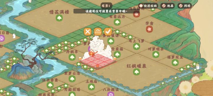 不管是卧室还是外面的建筑摆放,全部是系统默认想给我放哪儿就放哪儿。以至于有些混搭的美(划去),比如温泉旁边放足球场,系统默认也很合理嘛(不是)。小组组员来我家助飞都快速点完赶紧跑以免对眼睛造成工伤
