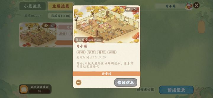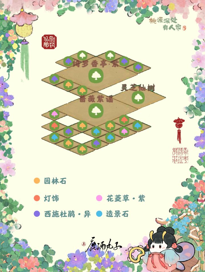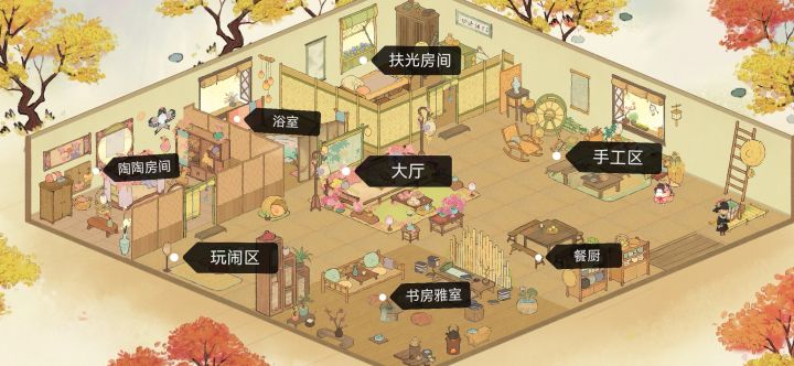 四级大屋的区域划分布置,已上传造景,大部分为常驻家具可替代,请随意发挥#游戏安利#游戏福利#桃源深处有人家
