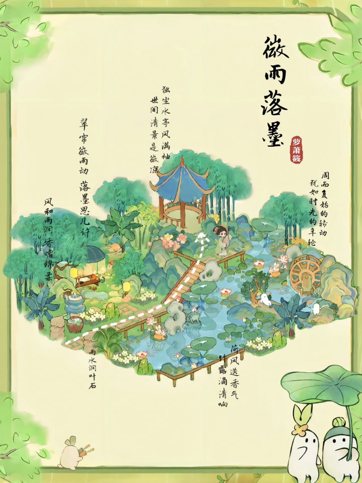 桃源|「微雨落墨」雨水节气建筑布局(可抄录)竹林深处 香赠绵柔荷风香气 微兩落墨造景編号:wz442947主要建筑:微雨落墨 芭蕉凉夏 牡丹亭 叮咚水车🌸更多布局可移步主页,造景布局可抄,若发布平台请@ 我,禁未授权商用和搬运,谢谢喜欢💕#桃源深处有人家#桃源深处有人家布局展示#桃源造景展
