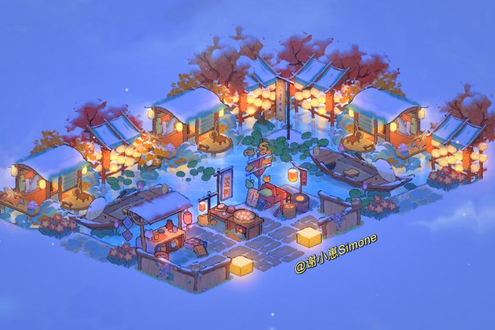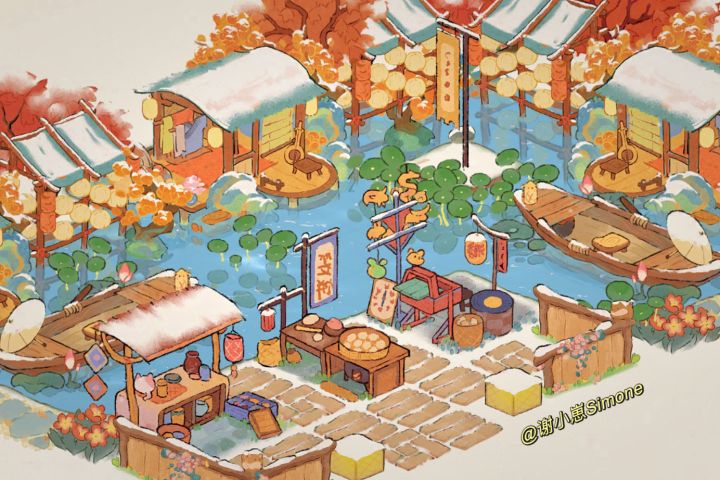 水上小集市,桃源生活里的微小瞬间~造景编号:wz402410#游戏安利#桃源深处有人家#桃源深处有人家生活记录#桃源深处有人家布局展示#桃源深处有人家装修