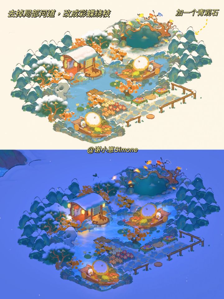 造景编号:wz386061灵感来自本期山遇的主题,夜景效果真的很有意境。造景只上传了图二,其他搭配可以手动更改植物和山,其他位置都是没变的哈~#游戏安利#桃源深处有人家#桃源深处有人家装修#桃源深处有人家生活记录#桃源深处有人家布局展示