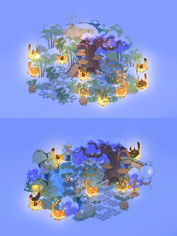 猫猫乐园来啦!!数数有几只猫?~新建筑「紫叶树居」好漂亮~想和猫猫永远在一起!