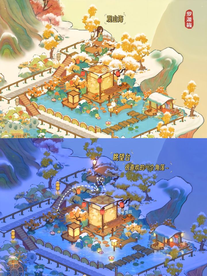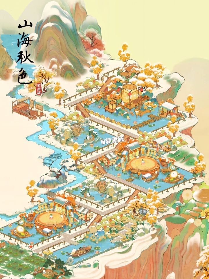 桃源丨「幽幽南山」到「山海秋色」百搭布局模版🌸海愿与山海共秋色,不负韶华不染尘。🌸布局框架沿用了 「幽幽南山」的格局,这个版本比较实用。🌸主要建筑:花锦月盏 舞榭绮梦 叮咚水车 池萝探宝 涟舟轻荷 秋语相恩瑶光赏台 梅妆惹香 香果涟舟🌸布局可抄回家,若发布请在正文@我哦,禁末授权商用和搬运,谢谢喜欢。#桃源深处有人家布局展示#桃源深处有人家#桃源深处有人家生活记录#桃源深处有人家装修