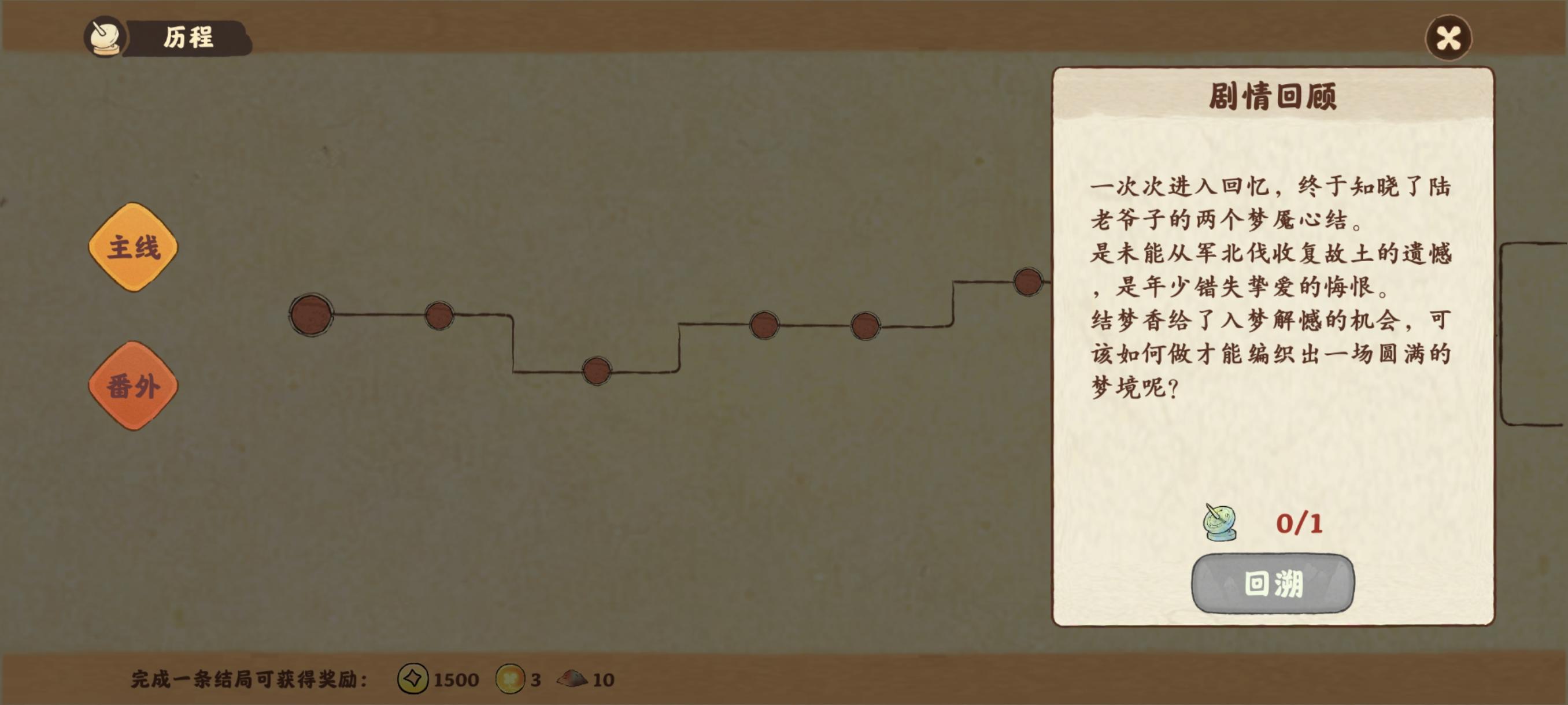 友友们的剧情都过完了吗,我过到结梦这里,但是回溯也不够了,目前4600舒适度,到5000才能获得一个回溯,并且后面也没有回溯了,还没有过番外呢,还有其他获得回溯的方式吗?#游戏讨论