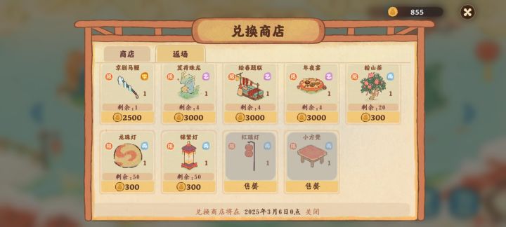 新人刚入坑没几天,等迎新春活动打开了之后显示这俩时间已截止(贴纸是我昨天不死心乱点,发现有提示,试着去做了一下才有的这三张)是不是截止了就完全做不了了哇 ꒦ິ^꒦ິ活动币不够兑换建筑物实在没办法惹,现在换不到以后会返场吗?提前在这里谢谢各位大佬的帮助♡(.◜ω◝.)♡