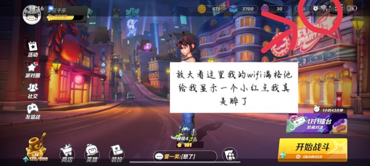 心里承受压力好的兄弟们玩,心里承受能力不好的兄弟看见直接卸载就好了,这垃圾游戏,我wifi满格他给我一个小红点打架卡的动不了,然后呢再给你一个挂机提示,可惜没截图到挂机提示那张图,直截到了说我断开游戏这一张游戏制作人你是死了?还是没钱修复?