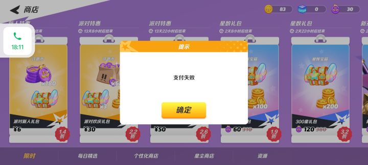 支付失败???第一次见不让充钱的游戏