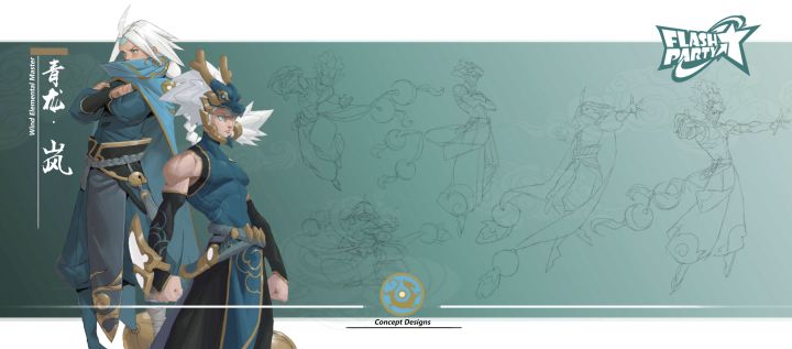 又一位英雄色登场了!这一次来到舞台的是彤的老熟人,也是翡翠谷最年轻的风系宗师——岚。随着岚的上线,大都会以外的世界又多了一角。今天就来和大家聊聊这位少年天才是如何诞生的吧。这一次的英雄设计,是围绕着东方和风这两个元素来展开的。岚的设定从一开始就是【风系宗师】,说到风,很容易就会联想到“迅捷”、“疾速”,但我们希望虽然年仅十八,但作为风系宗师的岚可以多一些冷静和沉稳,区别已有的速度型角色且更具有差