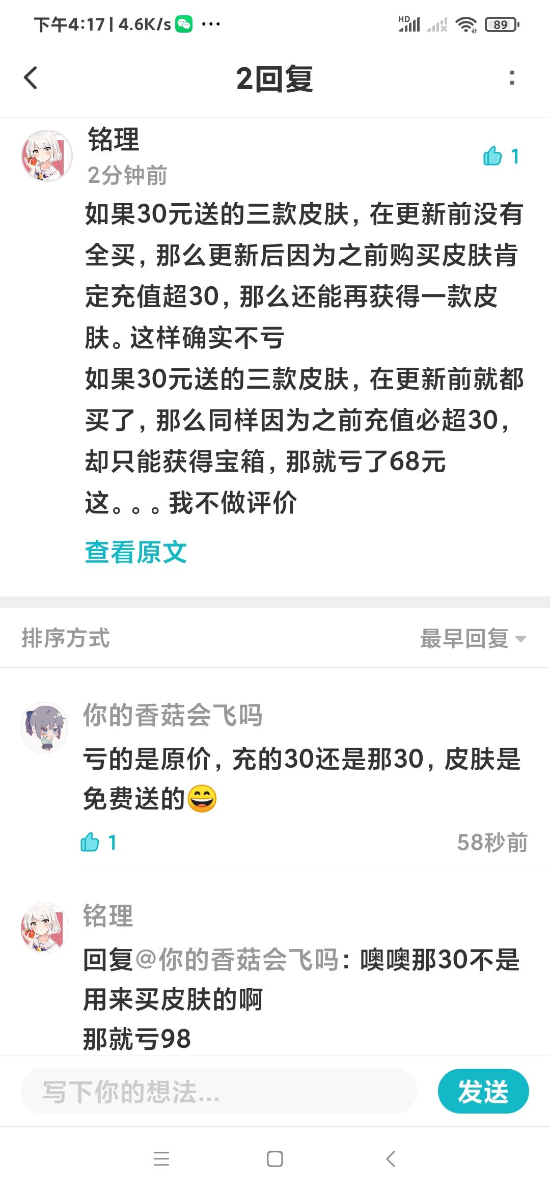不是带节奏,各位就别把我顶上去了总的来说,价格调整,充值优惠是好事,毕竟之前开服太多人嫌贵了但是问题、在于与已经氪金的玩家平衡上,那补偿的宝箱真的是没人要啊,养一个新角色用不着金箱子,蓝箱子多几个就满了啊(我用上个赛季屯的一点箱子就把人鱼升满还出贴纸了),也没有其他养成要用到箱子,金币又不能买皮肤。就算是新玩家为了抽英雄,之前抽出雅典娜换3个箱子也不能保证这三个箱子能再出一个英雄,价值完全不