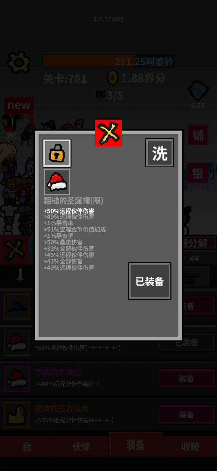 有几个伙伴满级之后攻击力似乎是1(不满级正常),如图