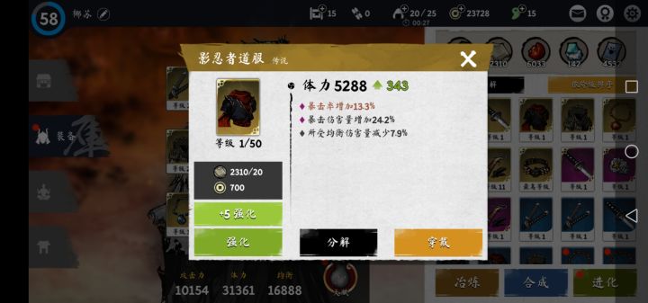 50+天了,普通全通了,现在卡修罗六刷金币吧,冲冲冲!太刀希望能洗个暴击爆伤,浪人服洗个攻速,忍者服洗个攻击,蓝刀上金出个紫暴击,俩业火都双攻暴击吧,以后以后双红朱雀,紫攻乌鸦,冲冲冲!
