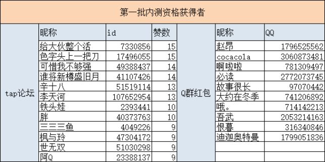 Hello各位少侠,让你们久等了!非常感谢各位少侠的积极参与和支持,你们的热情我们收到啦~❤️好了,废话不多说了!恭喜以下少侠获得了第一批内测资格,请各位少侠在规定时间内联系Q群管理员(官方Q群:1047648636),领取内测资格。预祝各位少侠玩的开心,也欢迎少侠体验之后能在论坛积极发布攻略,或者讨论游戏中的bug和建议,只要官方加精就可以赢取npc福利哦!Emmmm~对了!!!不要忘记了,此