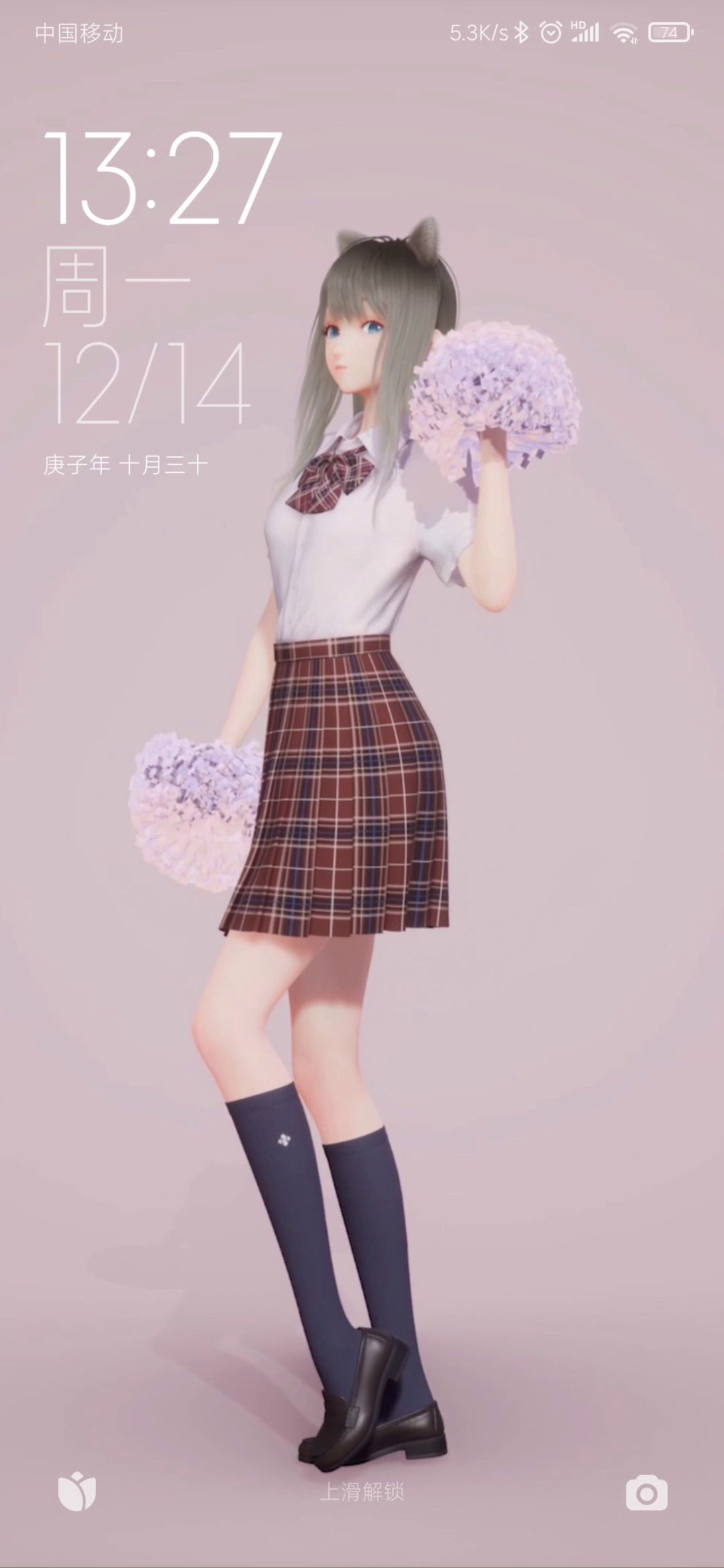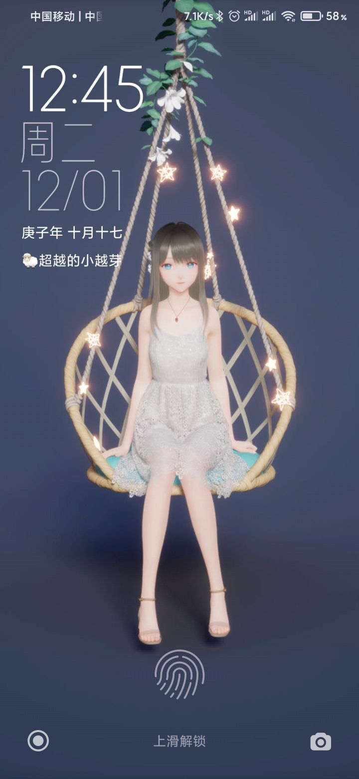 你们先在自带的主题商店里面设置动态壁纸。桌面和锁屏一起。然后在打开鹿鸣老婆。设置桌面和锁屏就行了。(小米红米机)
