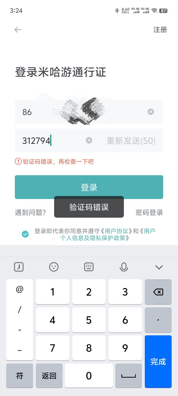 什么鬼,本来就想着登录下账号,结果说验证码错误,米哈游账号不是通用的么,bug?