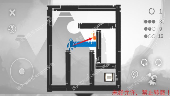 第五章攻略第一关1.向右融合红色火焰,向左来到最左边,向左双重旋转。2.向左融化蓝色墙,融合蓝色火焰,向左旋转。3.向左旋转,跳向终点。第二关1.向左双重旋转,融合蓝色火焰。2.向左双重旋转,跨过蓝墙,消灭黑色火焰,融合红色火焰,融化蓝墙,走向终点。2.2第三关1.向左双重旋转。2.向右旋转。3.向右旋转。4.向右旋转。5.向右旋转,走向终点。3.5第四关1.向左双重