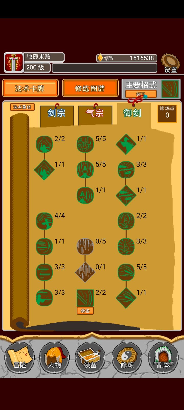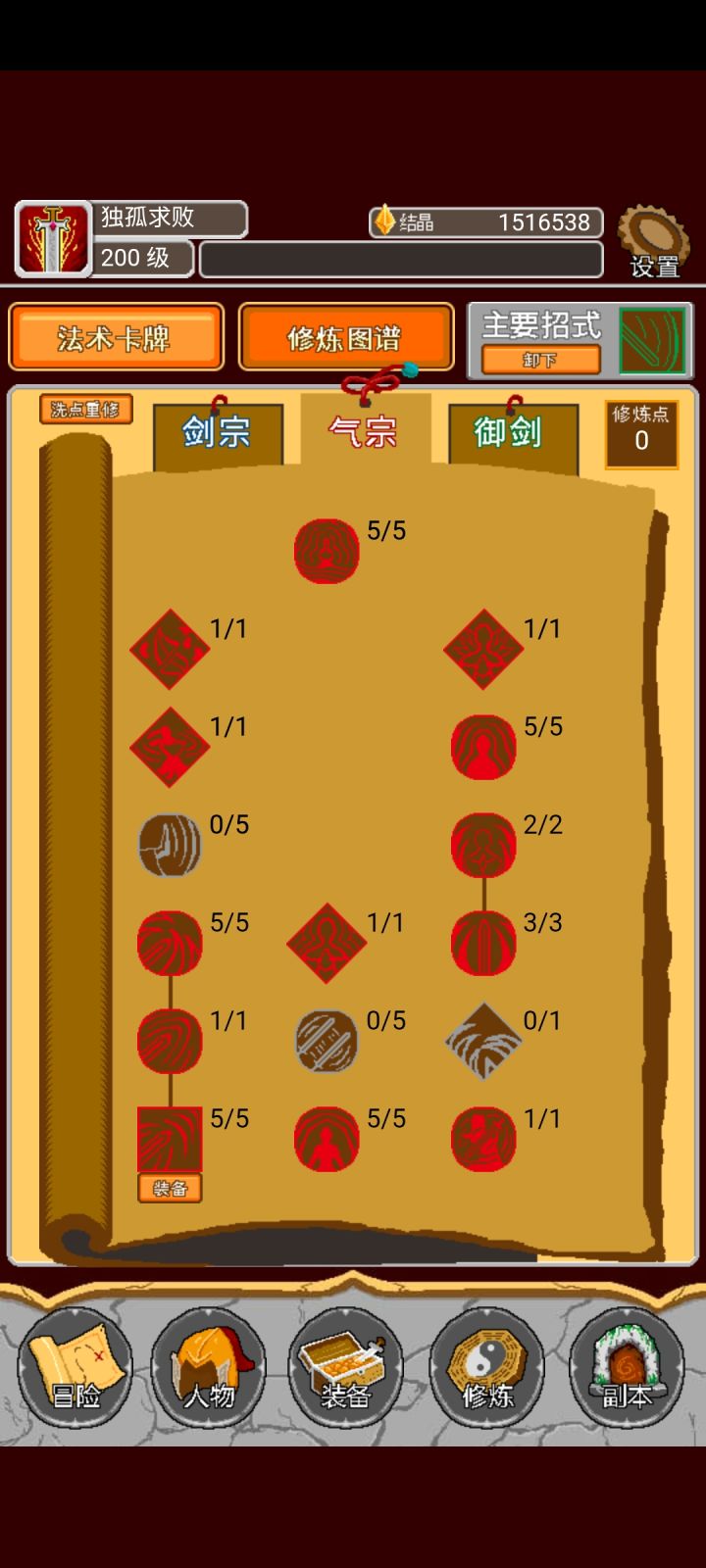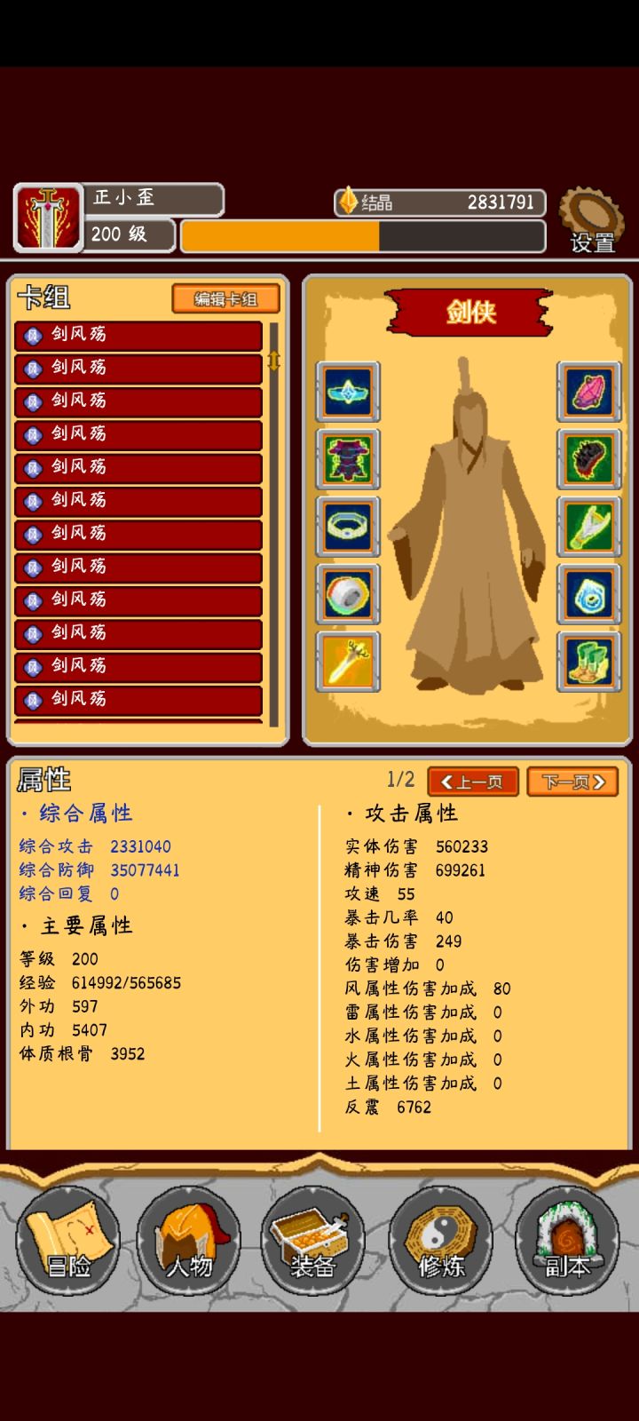 装备洗的不算很好。明天有空打280剑风殇永远的神。那些花里胡哨的buff有屁用。一刀下去5600万啥都没了。就是那个初始技能,配吧飞廉起飞。御剑起的手。后面三系全部都能点满。没钱去刷副本。一次几十万。可以多存点。一转后可以用。唔。。。刚刚无聊刷了一套风套。感觉更吊。但其实目前没差别。因为都是一刀秒。。