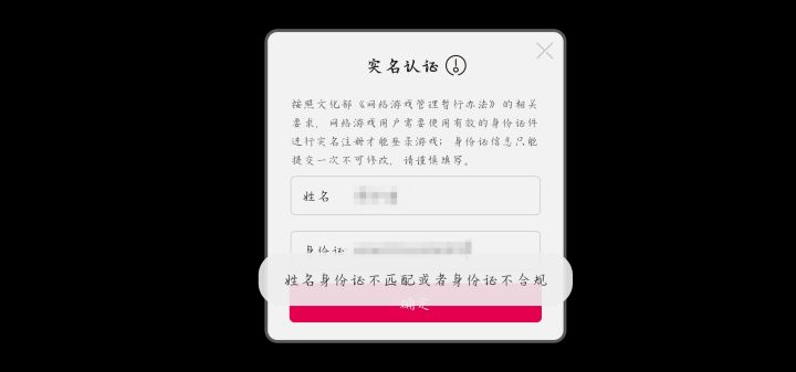 实名认证有问题呀!一直显示身份证号不对或不符合规格,啥意思呀,我身份证号明明和身份证上输的一模一样,游戏都玩不了了,难过( ノД`)
