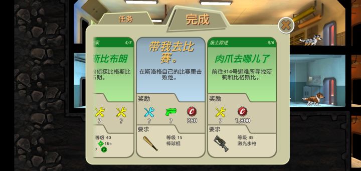 这个“肉爪去哪儿了”任务,做完了是可以获得比格斯比的狗吧,我记得我刚做完任务看到是一个减少打造花费的橙色传奇的狗,结果反回避难所后就找不到了,这是bug吗,有没有办法再获得啊,脑瓜子疼。
