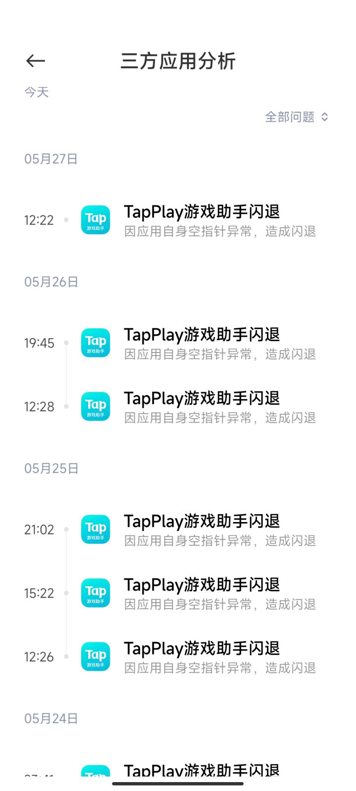 什么时候能够解决一下闪退的问题啊?Tapplay游戏助手能不能不这么折磨人呢?10分钟之内就闪退一次,让人怎么玩?是限时吗?孩子也可以至少玩一小时吧!!!😖😖😖