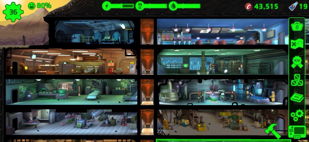 第1次发帖,请多多指教。我直接将避难所分成两部分,活动区和无人区。(中间空一层为隔绝灾难)活动区的灾难直接干掉,无人区的不必理会久了它自会消除优点:集中管理,更容易消除大灾难(如死爪、蝎子)缺点:不去管无人区的灾难会产生很久(灾难期间无法建设、无法外派任务)